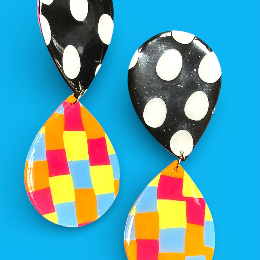 Handcrafted resin statement earrings.