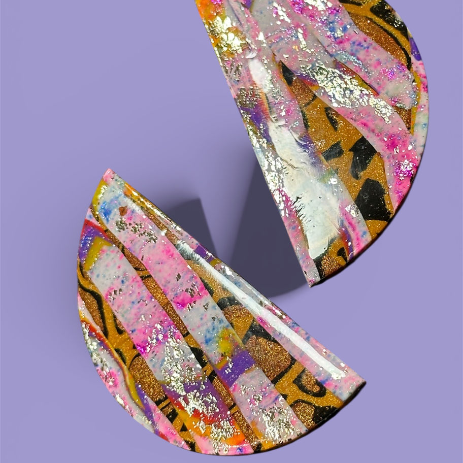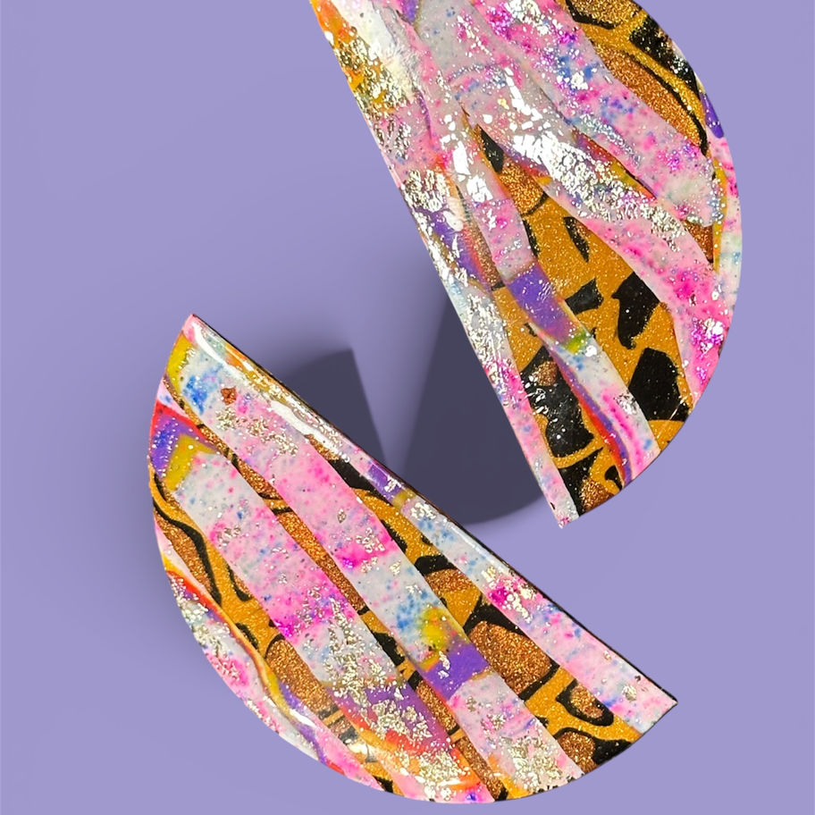 Urban Safari features sculpted half-moon silhouettes layered with metallic accents, soft washes of color, and an animal-print base that adds depth without overpowering.
